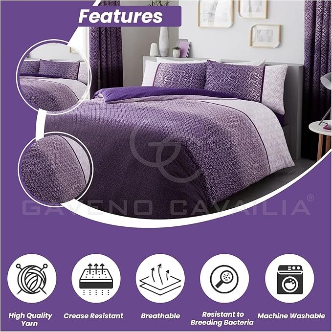 GC GAVENO CAVAILIA Feather Bedding Sets Purple, Reversible Duvet Cover, Warm Cosy Bed Covers, Double Quilt Set, Purple (699927)