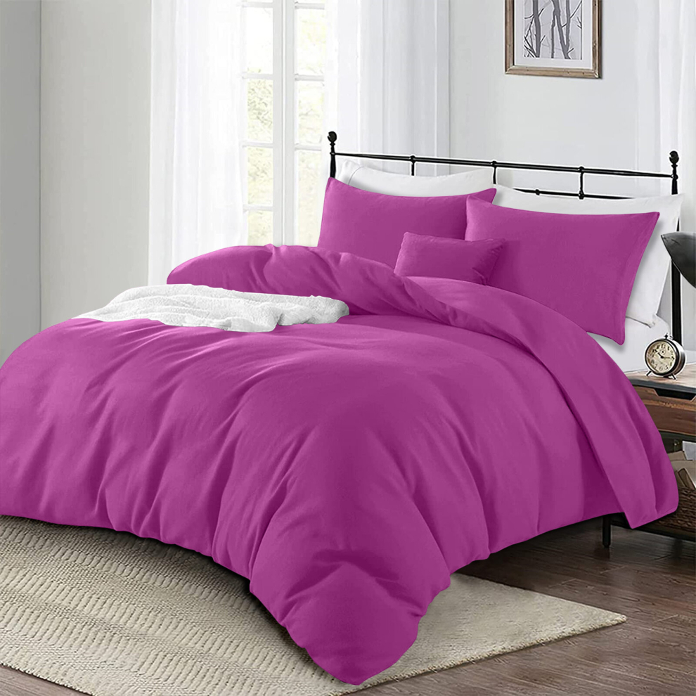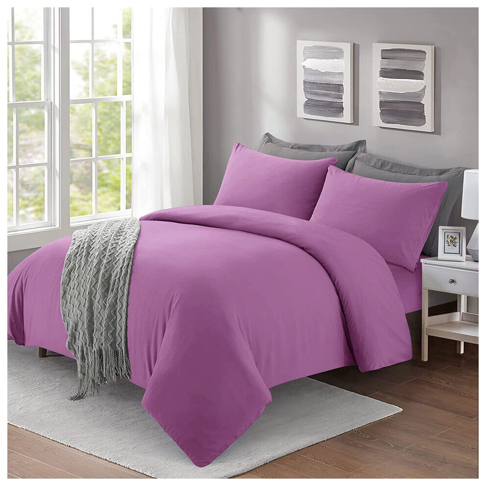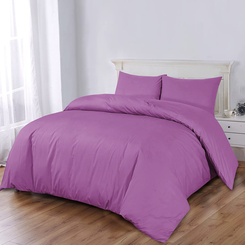 (Purple, Double) Luxury Duvet Cover & Pillowcase Plain Bedding