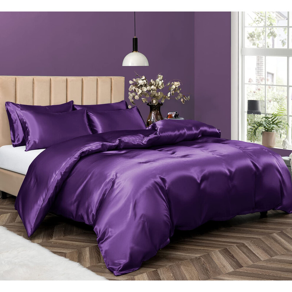 P Pothuiny 5 Pieces Satin Duvet cover FullQueen Size Set Luxury Silky Like Purple Duvet cover Bedding Set with Zipper closure 1 Duvet cover 4 Pillo