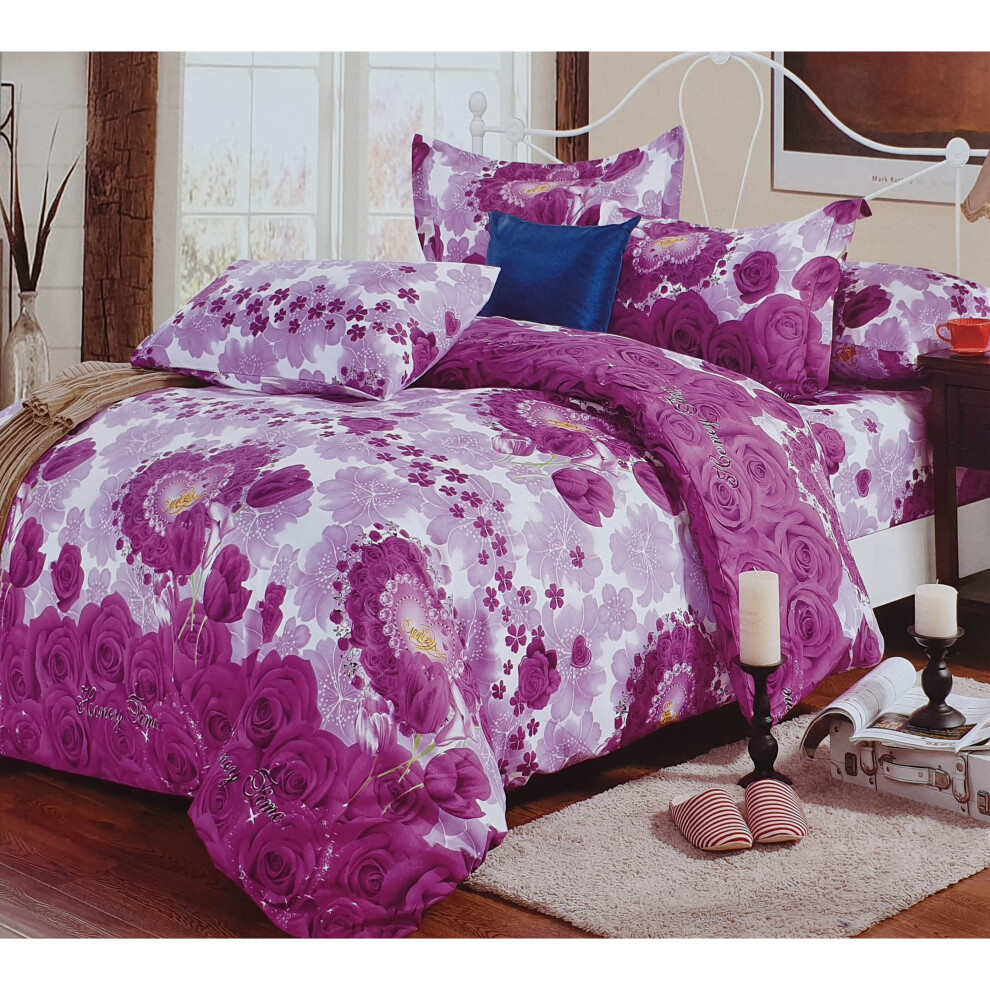 (Roses Purple, Double) Duvet Cover set Bedding Set Double King Size 90GSM