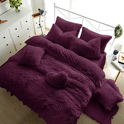 Teddy Fleece Duvet Cover with Pillow Case Thermal Warm Soft Cozy Bedding Bed Set (Purple Aubergine, Single Duvet Cover Inc P/Case)