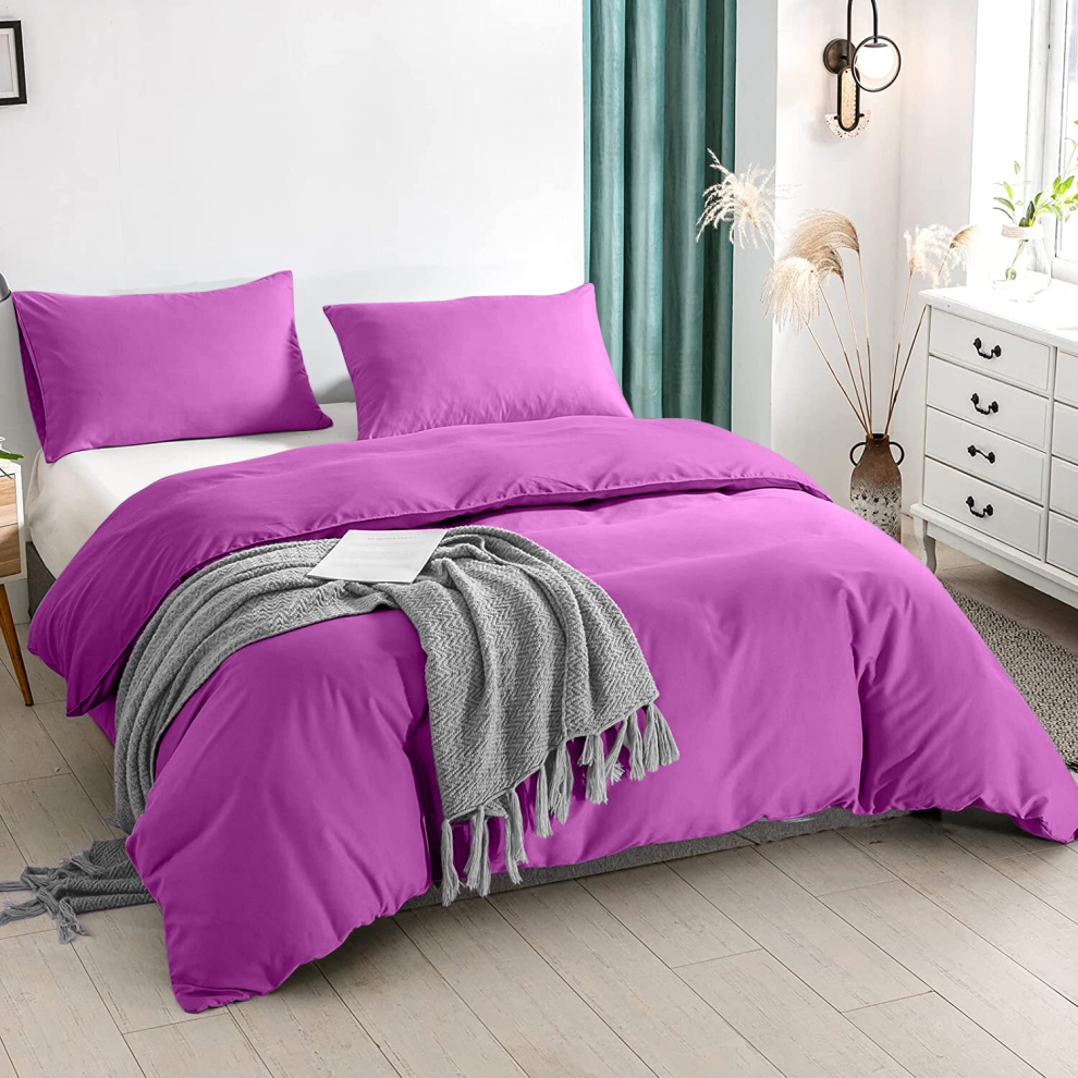 (Double: (200 x 200) cm, Purple) Duvet Quilt Cover Bedding Set Plain with Pillowcases Pair