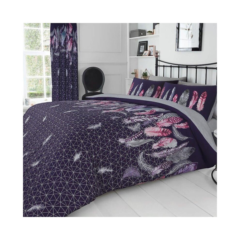 (Feather Purple, Double) Printed Duvet Cover Set Poly Cotton Reversible Geometric Pattern Single Double King Size