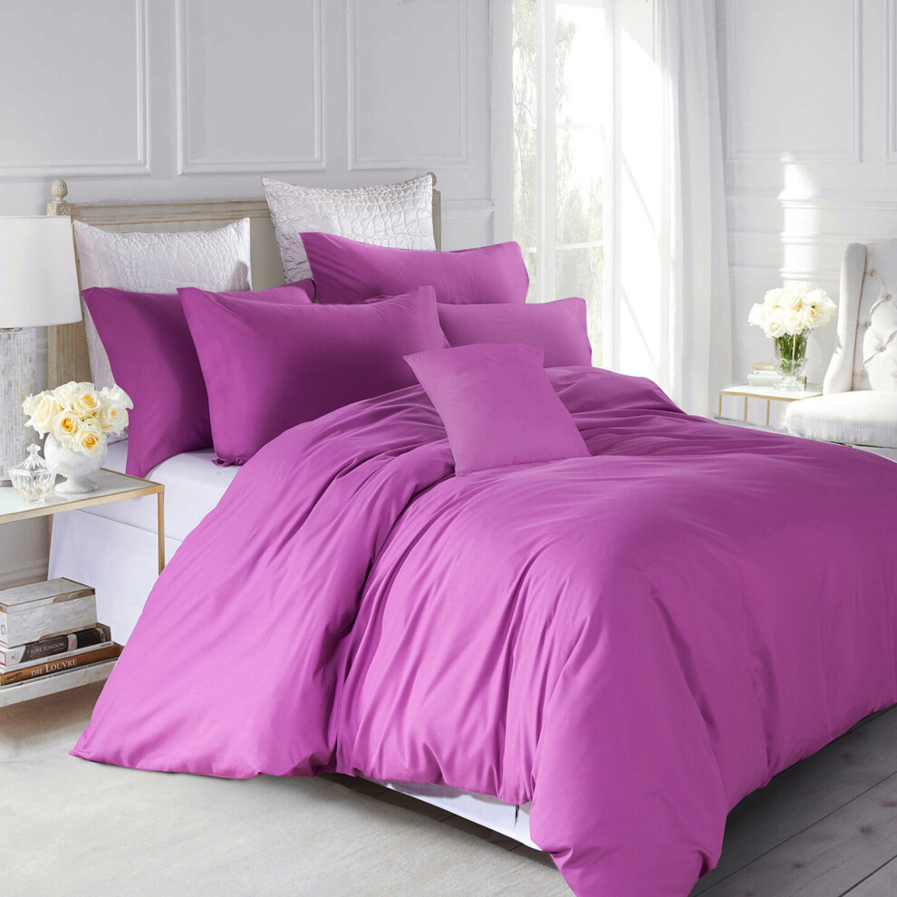 (Purple, Double) Plain Duvet Cover Single Double King Bed Set Quilt