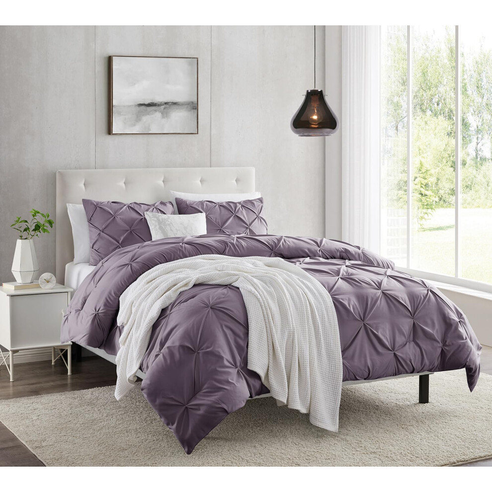 Nestl California King Duvet Cover Sets Gray Purple - Pintuck Duvet Cover California King 3 Piece Duvet Cover with Button Closure 1 Pinch P