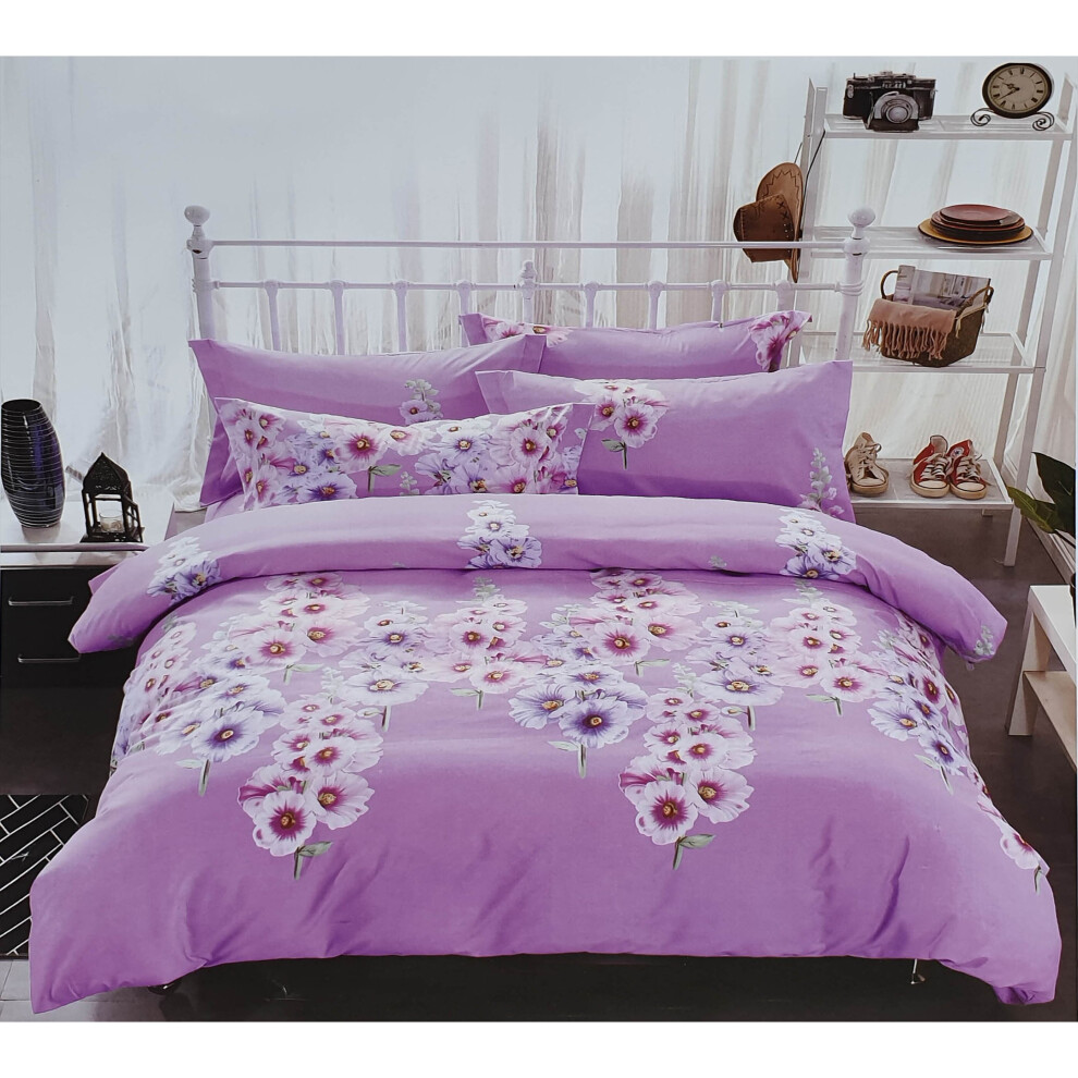 (Single, Botanic Purple) Duvet Cover Beautiful Floral Print Quilt Cover Set