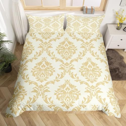 Homewish Royal Damask Bedding King Size, Purple Baroque Flower Duvet Cover for Girls Women Bedroom Decor, Gold Damask Floral Duvet Sets, Luxurious Boho Medallion Bedding & Linen