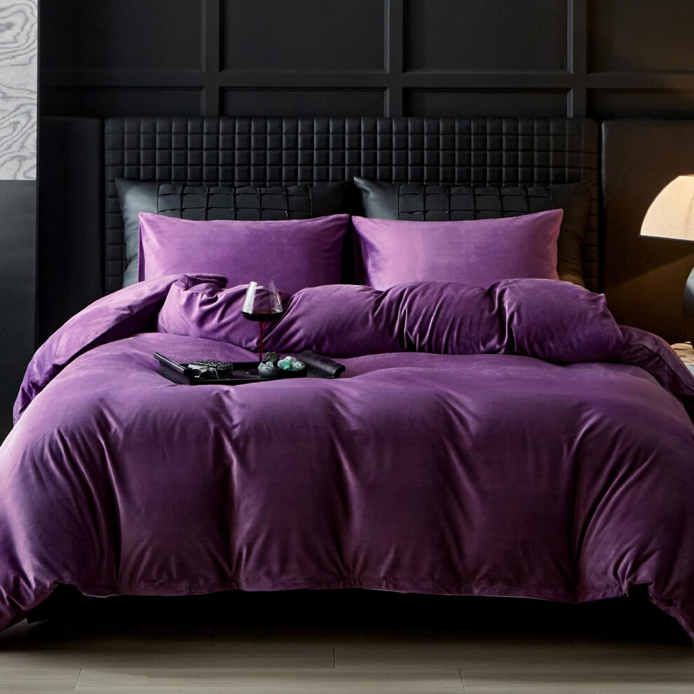 WARMDERN Purple Flanne Velvet Duvet Cover King Sizel Duvet Cover Bedding Sets 3pcs Ultra Soft Luxury Textured Modern Crystal Velvet Duvet Covers wit