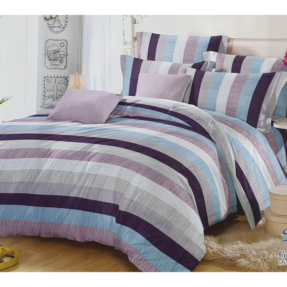 (Stripe Purple Blue, Double) Duvet Cover set Bedding Set Double King Size 90GSM