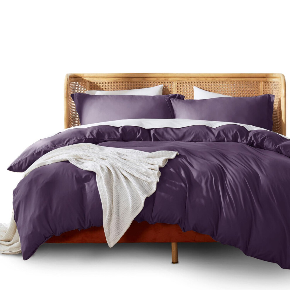 (Purple, King) Luxury Duvet Cover & Pillowcase Plain Bedding
