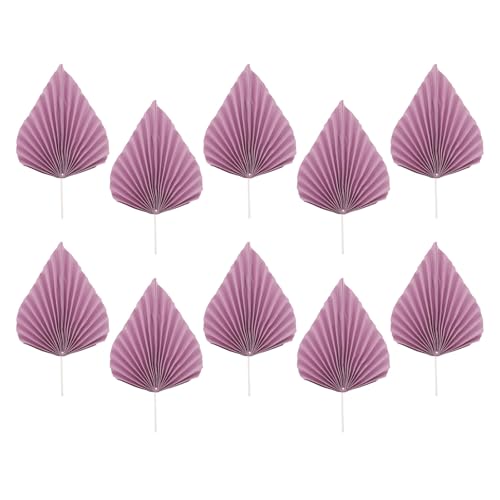 Garneck 10pcs Gold Palm Leaf Cake Decorations Paper Fan Tropical Cake Picks Bohemian Party Inserts for Birthday Wedding Large Purple Folded Leaf Fans