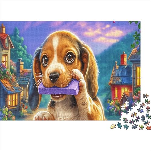 Beagle 1000 Piece Cardboard Jigsaw Puzzle Fun Challenging for Adults Kids 12+ Kids Beginners Teen Cute Beagle Chews Purple Toy Puzzle Fans Brain Teaser Game 70x50cm/1000pcs