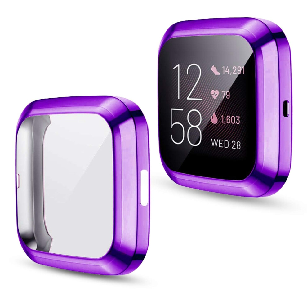 Full Coverage Protective TPU Shell Case with Fade Resistant Plating Purple for Fitbit Versa 2