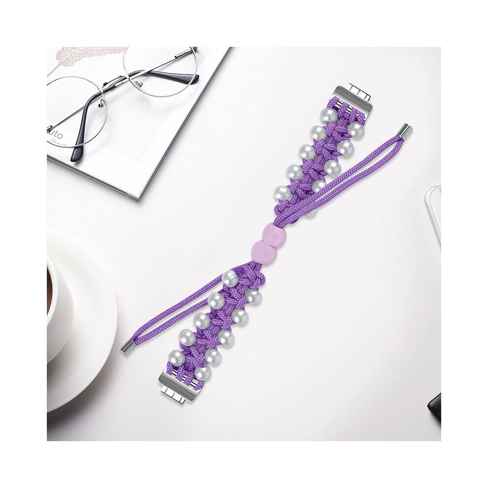 (Purple, For Fitbit Inspire 2) For Fitbit Inspire 3/2/1 Women Pearl Nylon Braided Band Wristband Strap