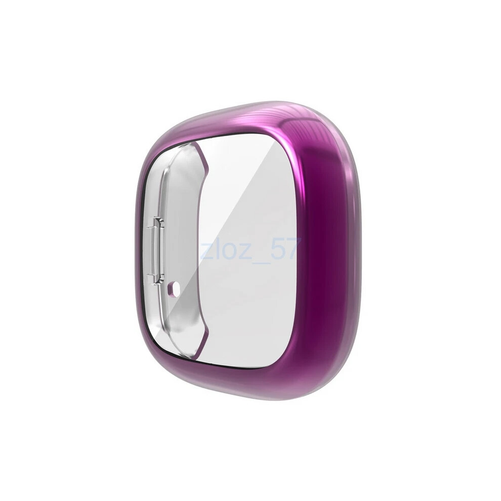 (Purple) Fitbit Versa 3/Sense Soft TPU Plated Bumper Full Screen Cover Smartwatch Case New
