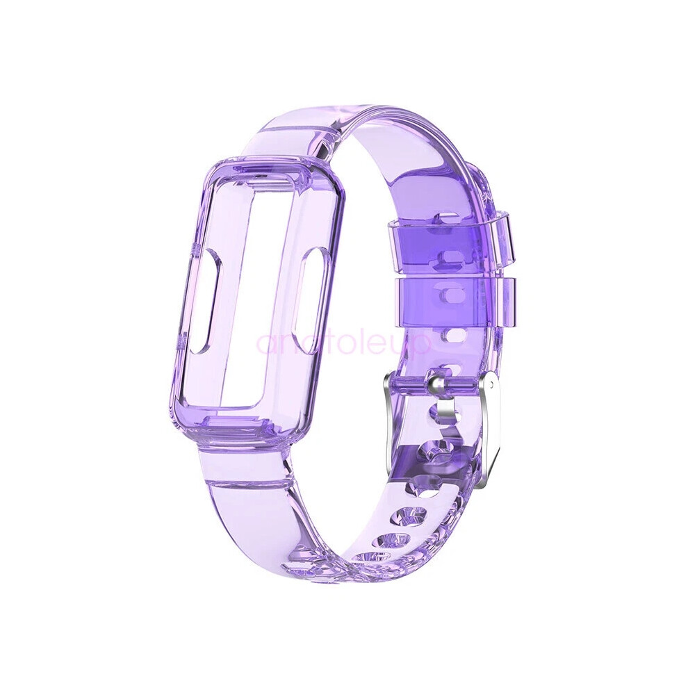 (Clear Purple) For Fitbit Inspire 3 TPU Clear Sports Band Strap Bumper Case Protect Watch Band Hot