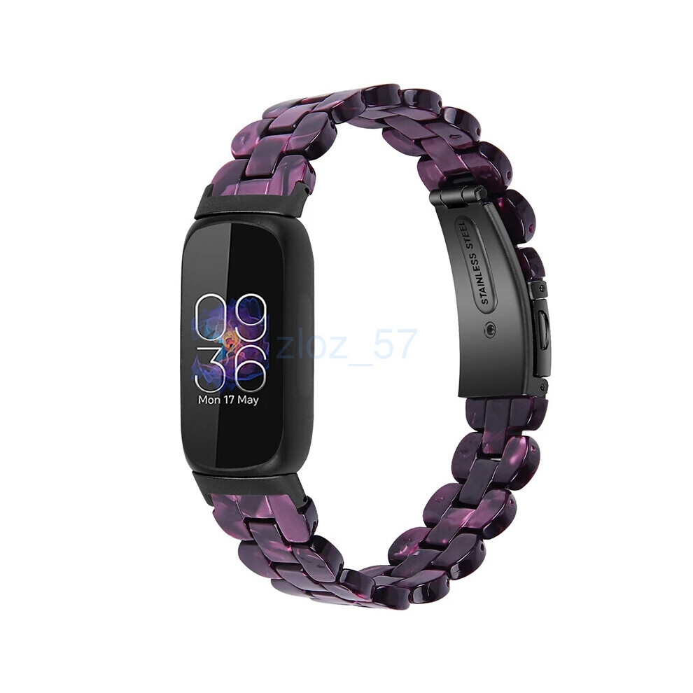 (Purple) For Fitbit Inspire 3 Fashion Luxury Resin Strap Stainless Steel Watch Band new