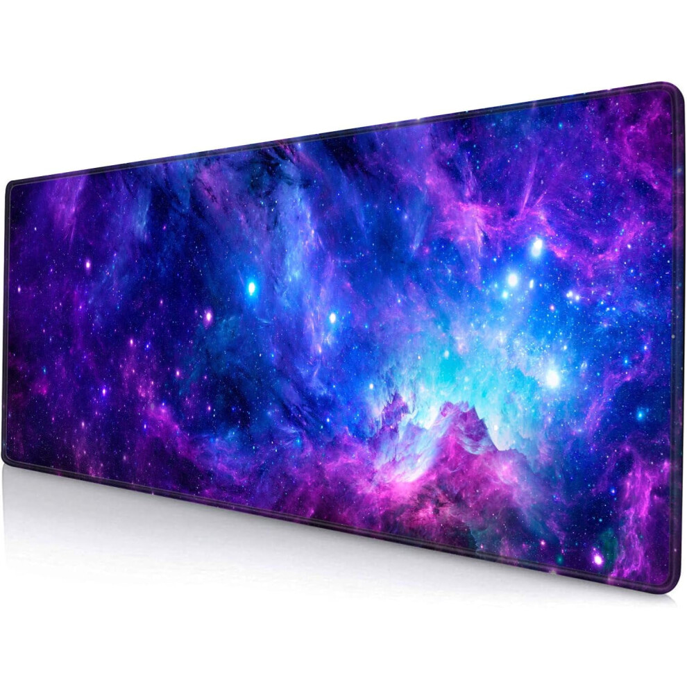 Large Purple Galaxy Gaming Mouse Pad, 31.5x11.8", Stitched Edges, Non-Slip Rubber Base