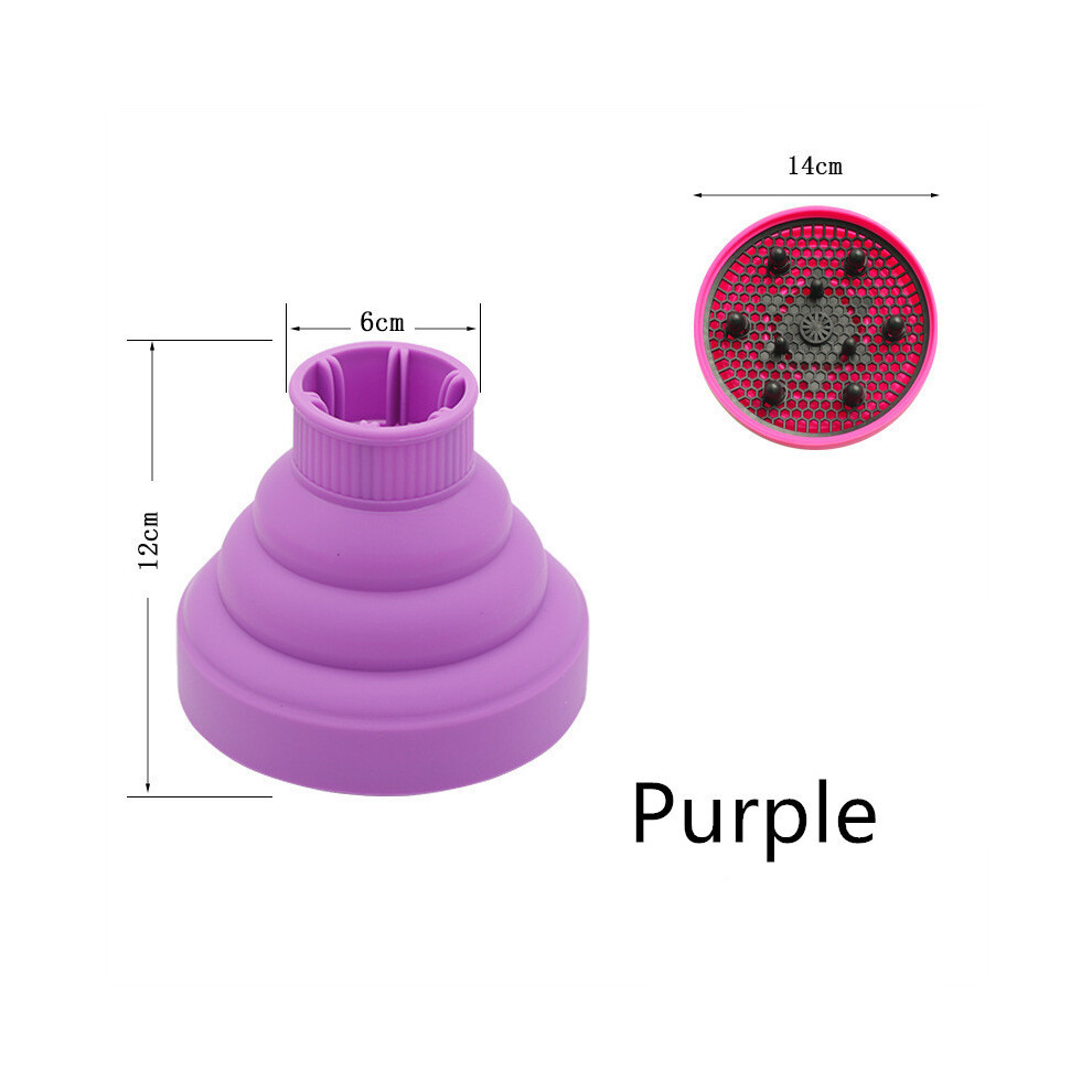 (Purple) Collapsible silicone hair dryer diffuser Travel and easy storage Fit nozzle