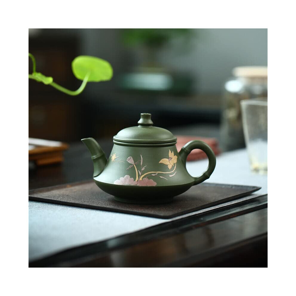 230CC Handmade Green Kettle Purple Clay Teapot Zisha Teaware for Puer Tea Elegant Gift