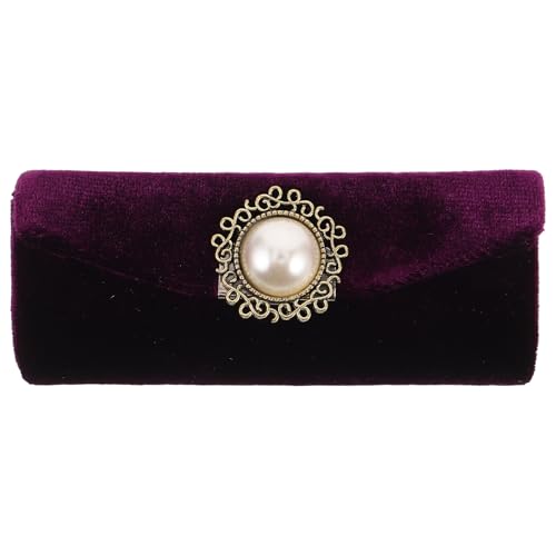 FRCOLOR Small Lipstick Mirror for Purse 2.3x8.6cm Purple Velvet Lipstick Organizer with Mirror Fabric and Glass Makeup Organizer Stylish Protective Case for Travel
