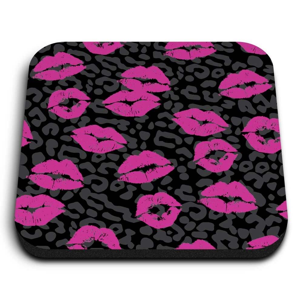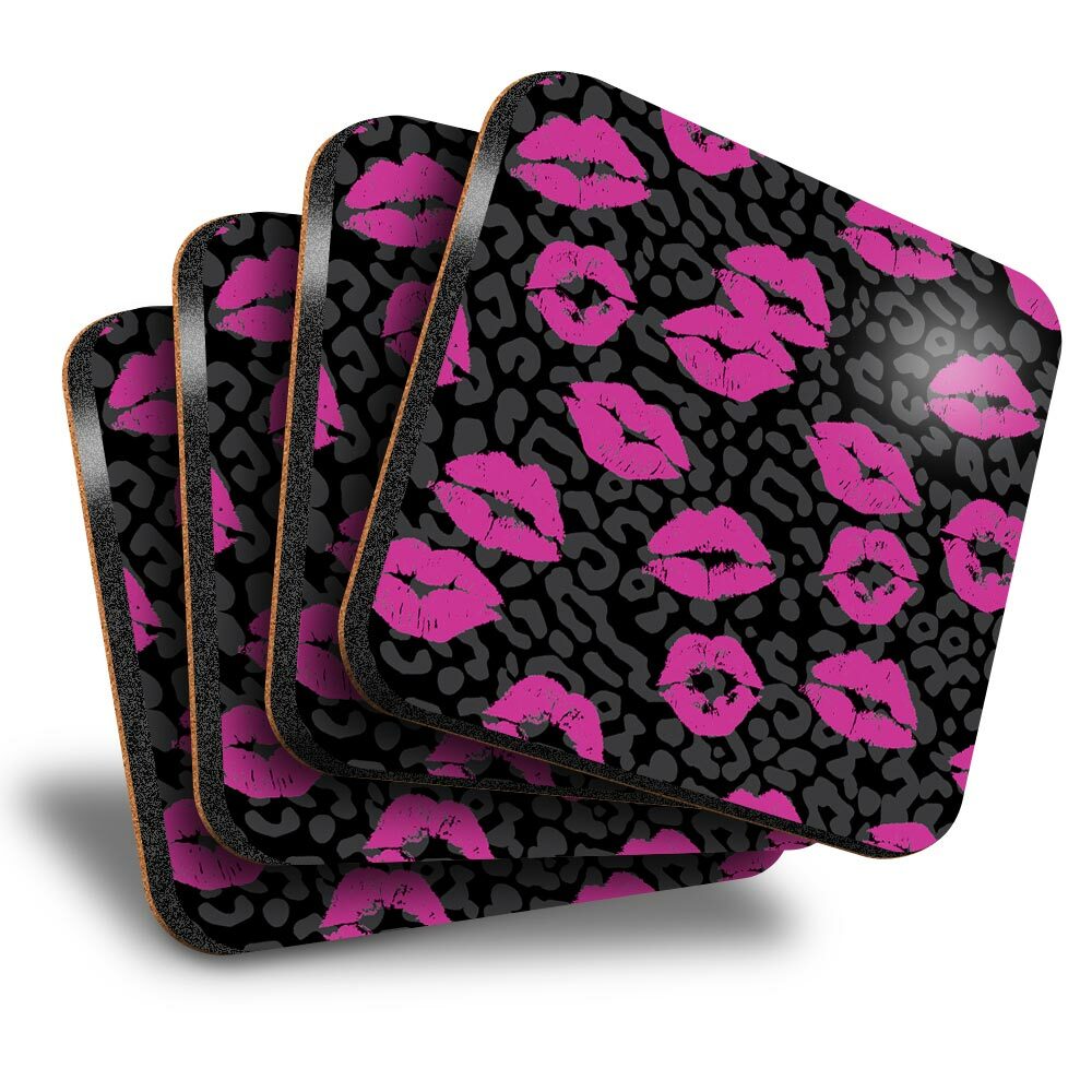 Set of 4 Square Coasters - Pink Purple Lipstick Kisses Kiss Girls #46099