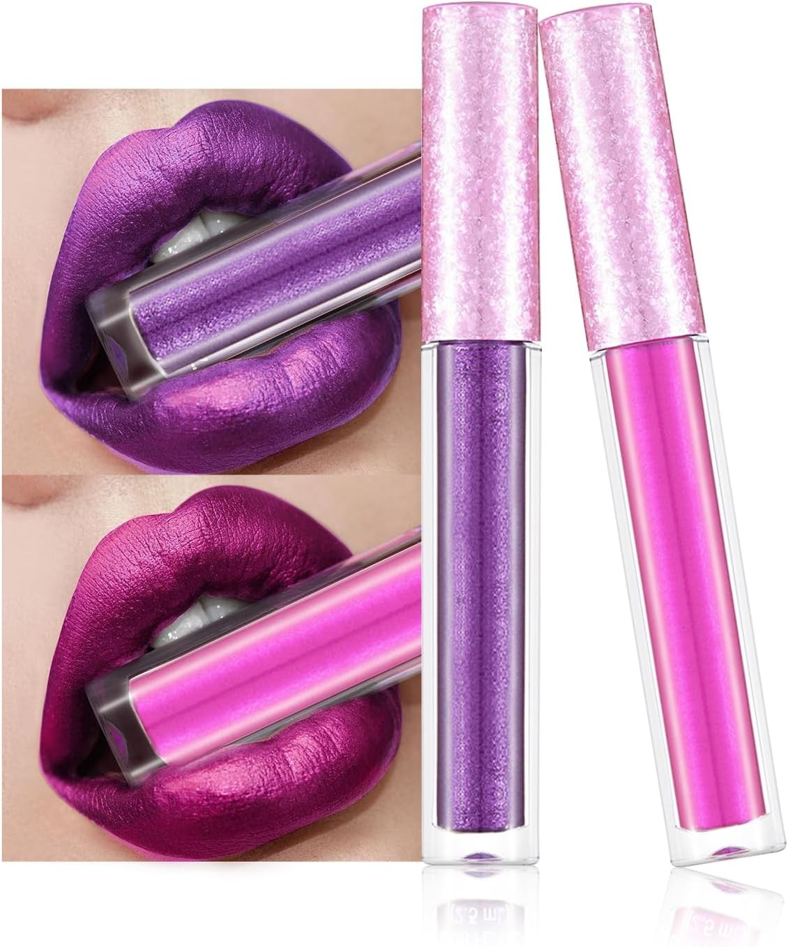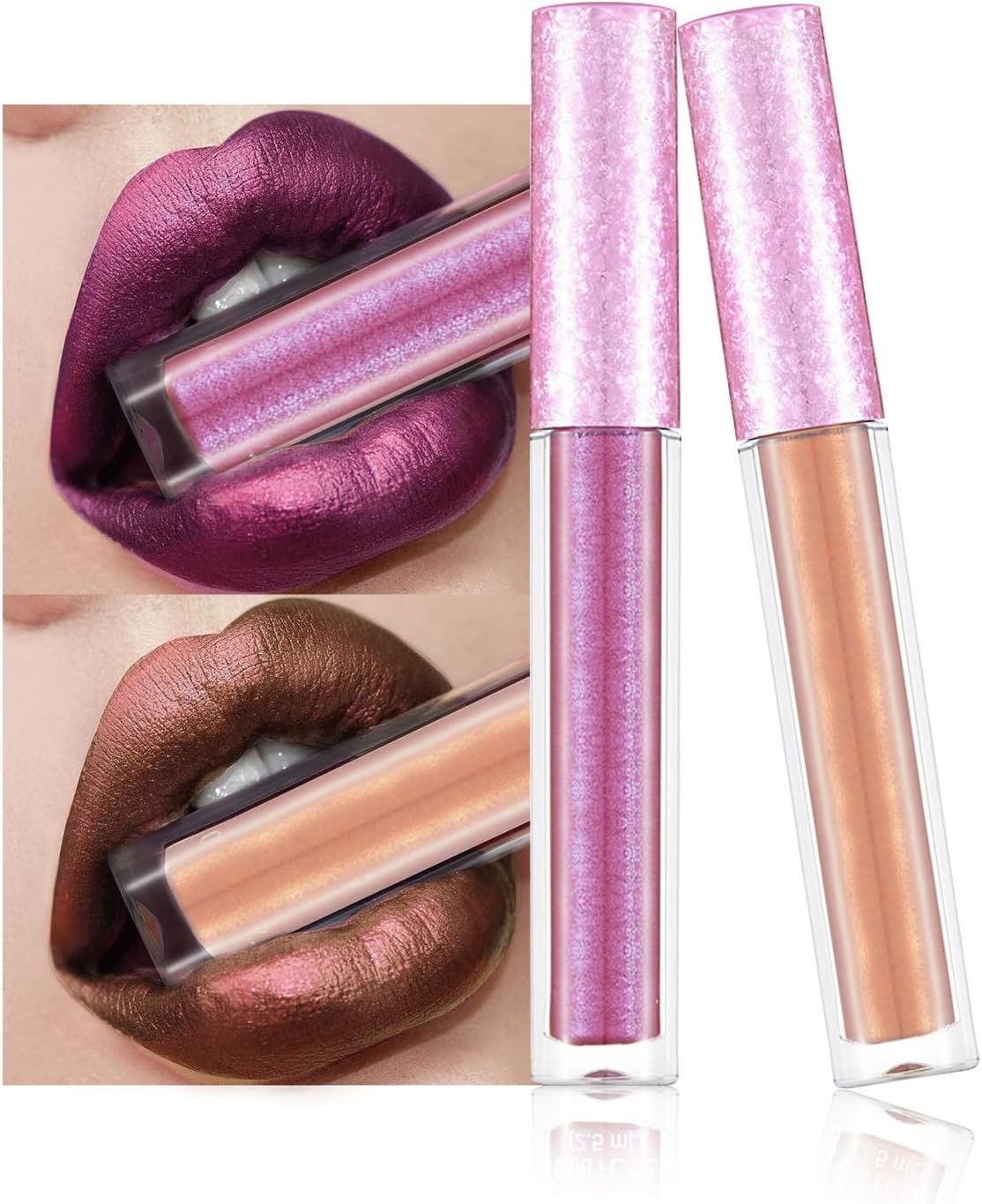 Glitter Lipstick, Purple Pink Metallic Shimmer Long Lasting Red Lip Gloss Lip S