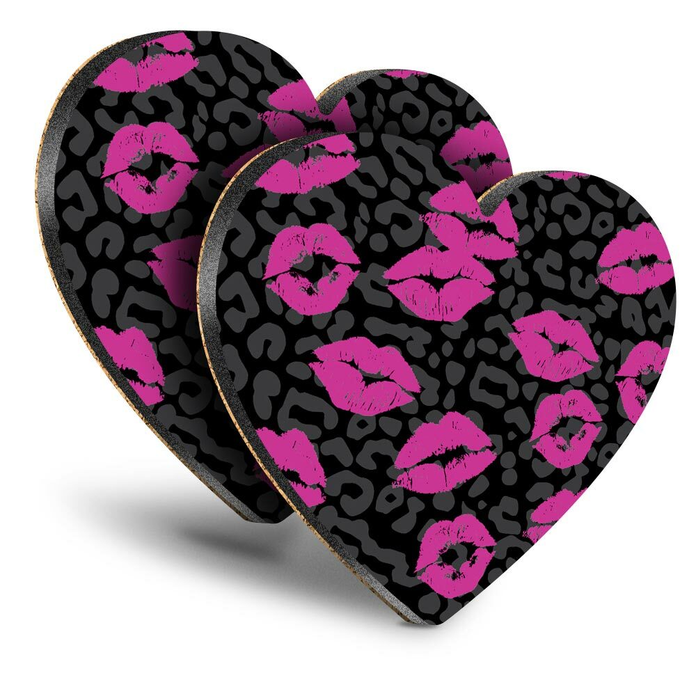 2x Heart MDF Coasters - Pink Purple Lipstick Kisses Kiss Girls #46099