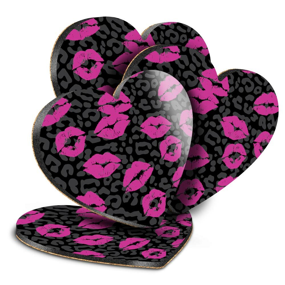 4x Heart MDF Coasters - Pink Purple Lipstick Kisses Kiss Girls #46099