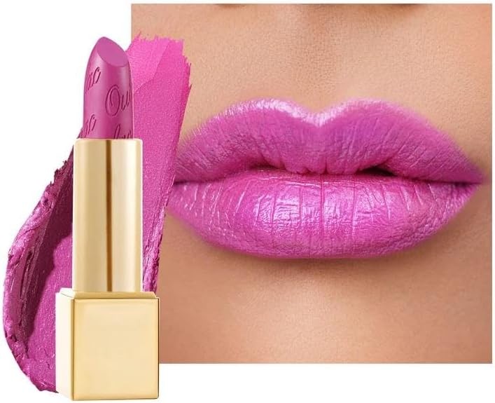Oulac Purple Lipstick for Women with Metallic 3D Shine Lightweight Hydrating Formula High Impact Lip Color Vegan Beauty Full Coverage Lip Makeup R
