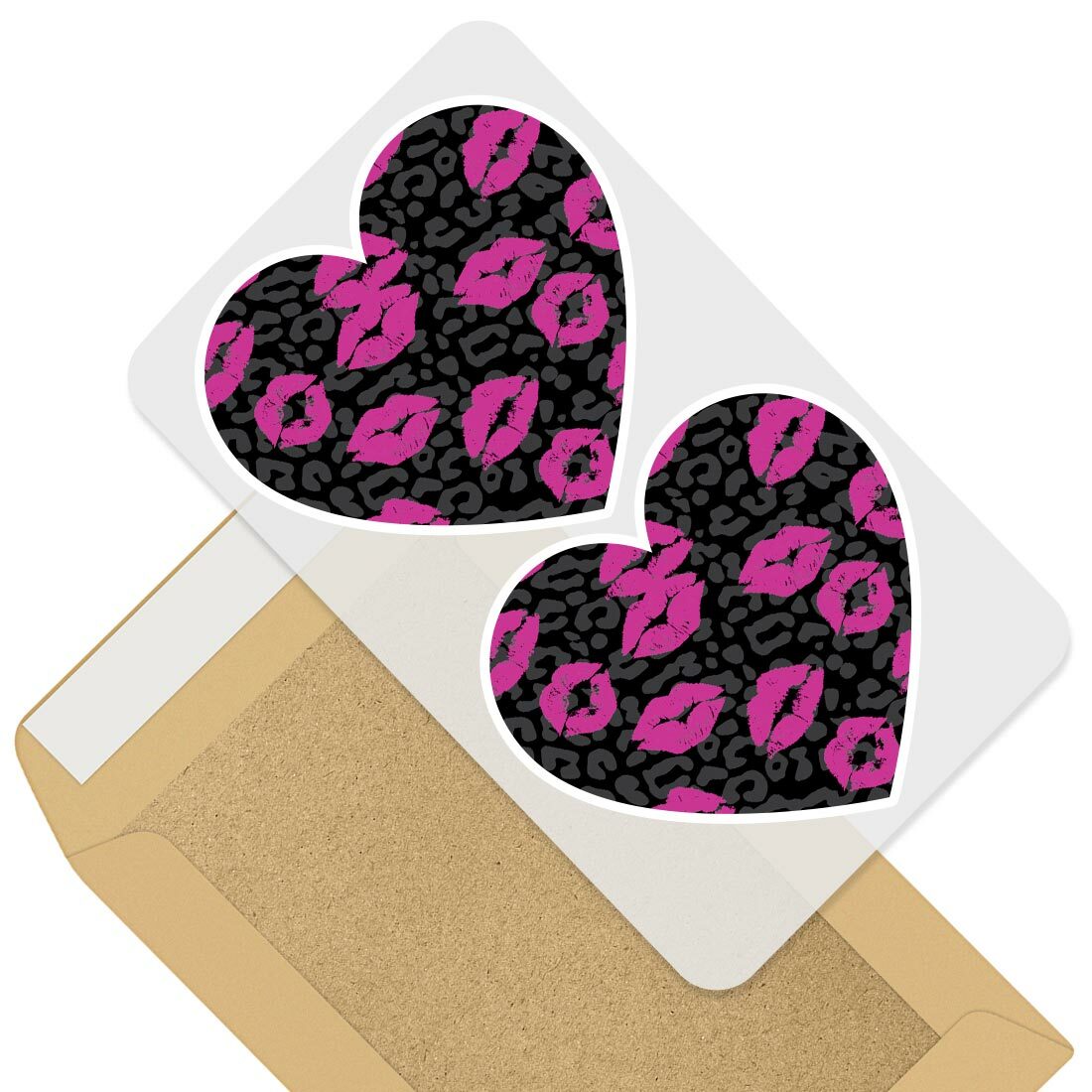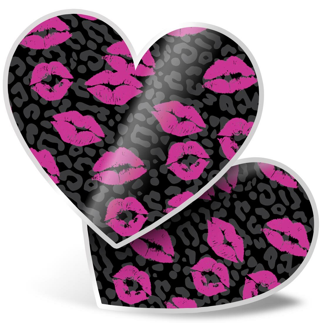 2 x Heart Stickers 7.5 cm - Pink Purple Lipstick Kisses Kiss Girls #46099