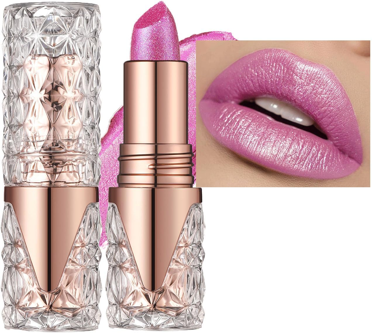 OULAC Purple Metallic Glitter Lipstick, Violet Shine High Impact Lipcolor,Mauve