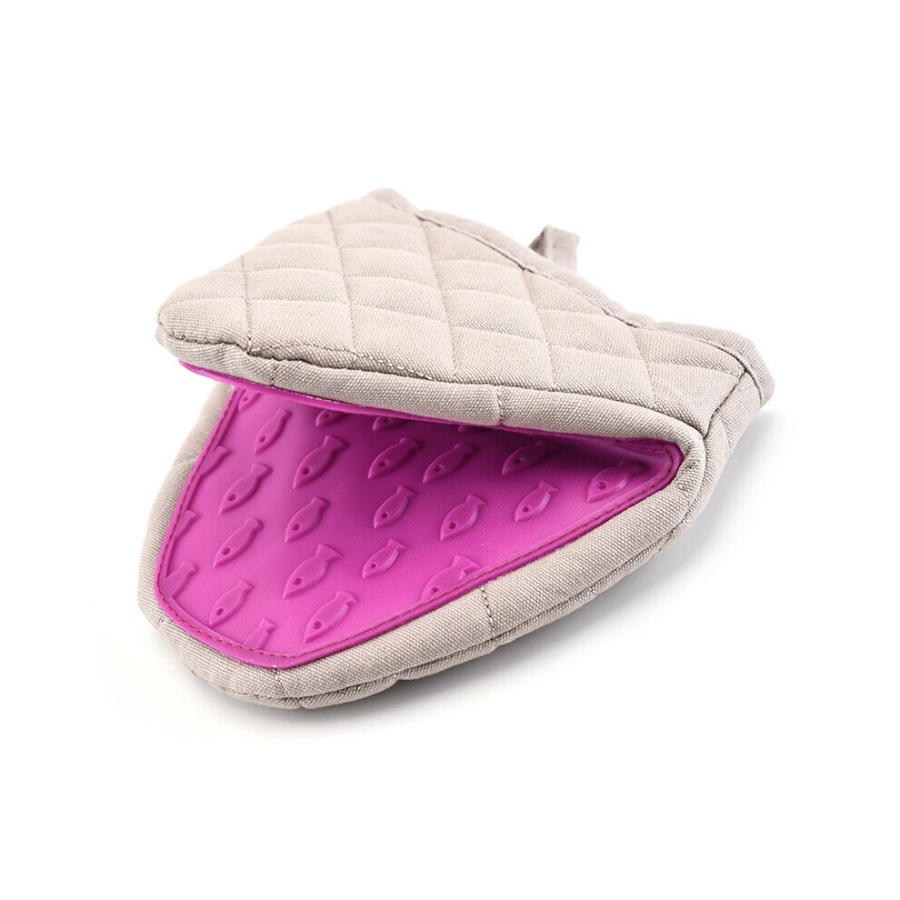(Purple) Heat Resistant Microwave Oven Mitts Silicon Baking Gloves Anti-scalding Insulation Clip Kitchen Household BBQ Oven Pot Holder