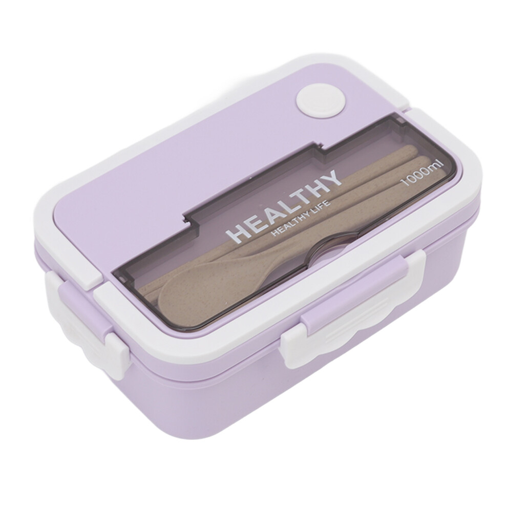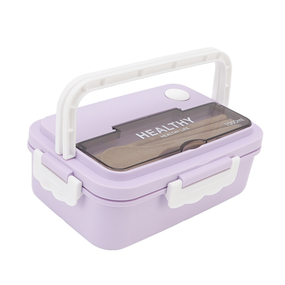 (Purple) Plastic Bento Compartment Sealed Portable Lunch Box Student And Children's Microwave Lunch Box