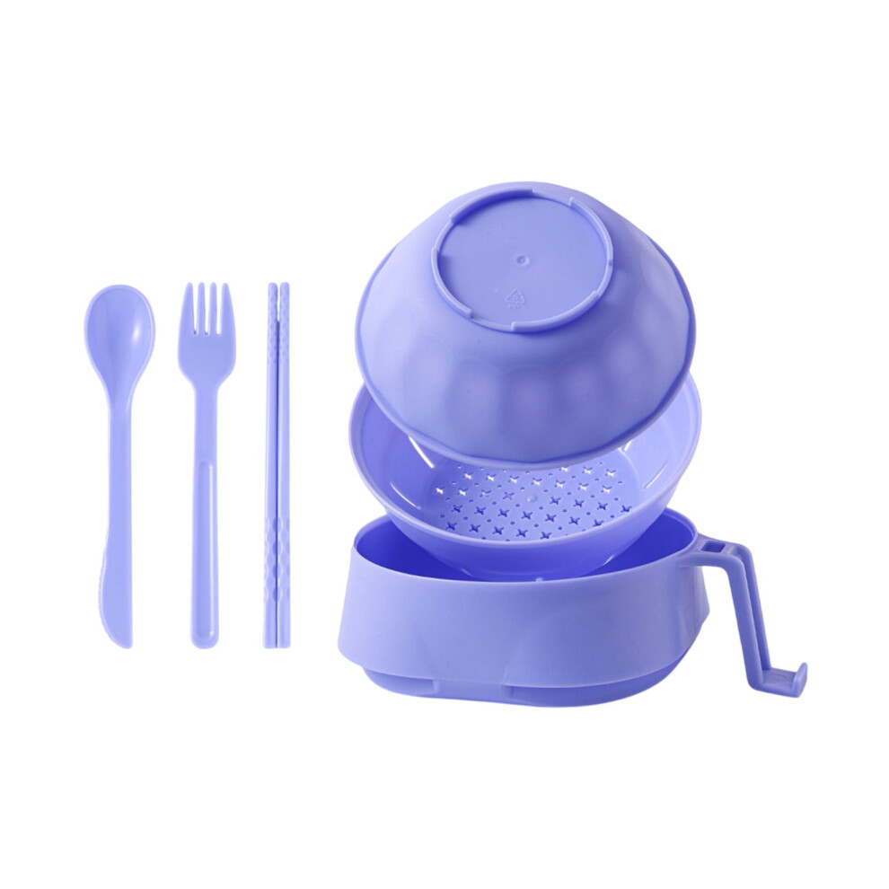 (Solid Color, Purple - 1 Count) Microwave Safe Instant Noodle Bowl & Tableware Kit, Bowl with Fork, Spoon, Chopsticks, Lunch Box for Student, Dinnerwa