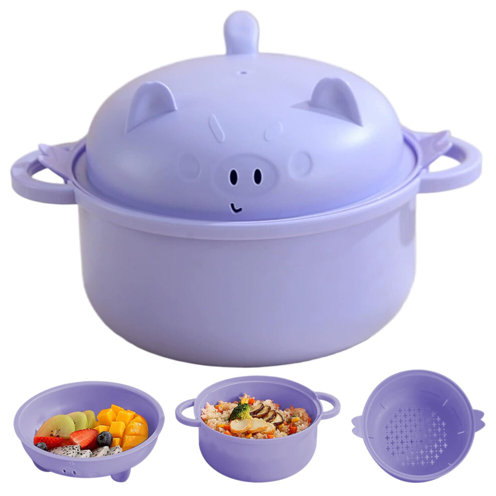 Microwave Ramen Bowl with Lid, Large Capacity Cute Pig Design, Leakproof and Microwave Safe for Home School Office, Purple