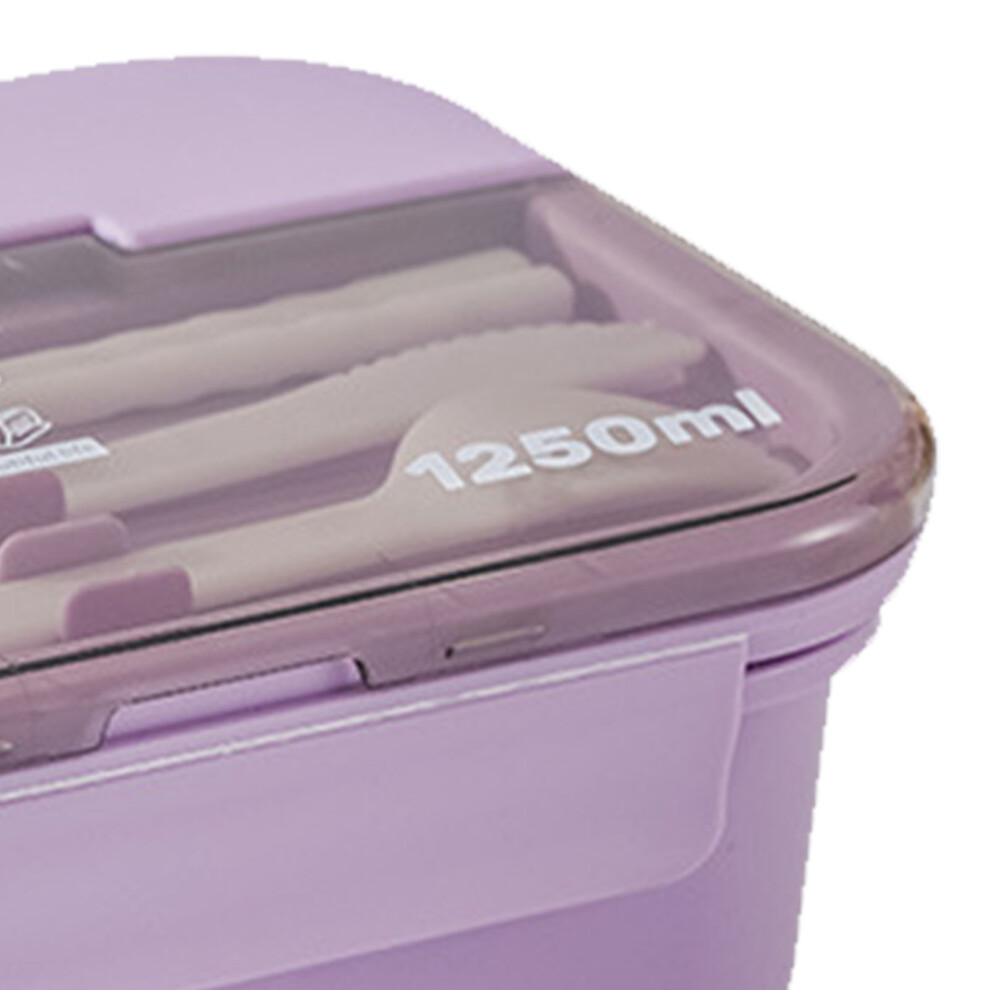 Purple 3-Compartment Microwave Lunch Box 1250ml, 19.5x14.5cm