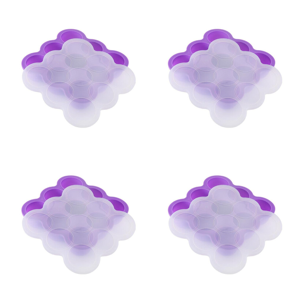 4-Pack Silicone Freezer Trays w/ Lids, 9-Section, Stackable, Dishwasher & Microwave Safe (Purple, Compatible with Standard Freezers)