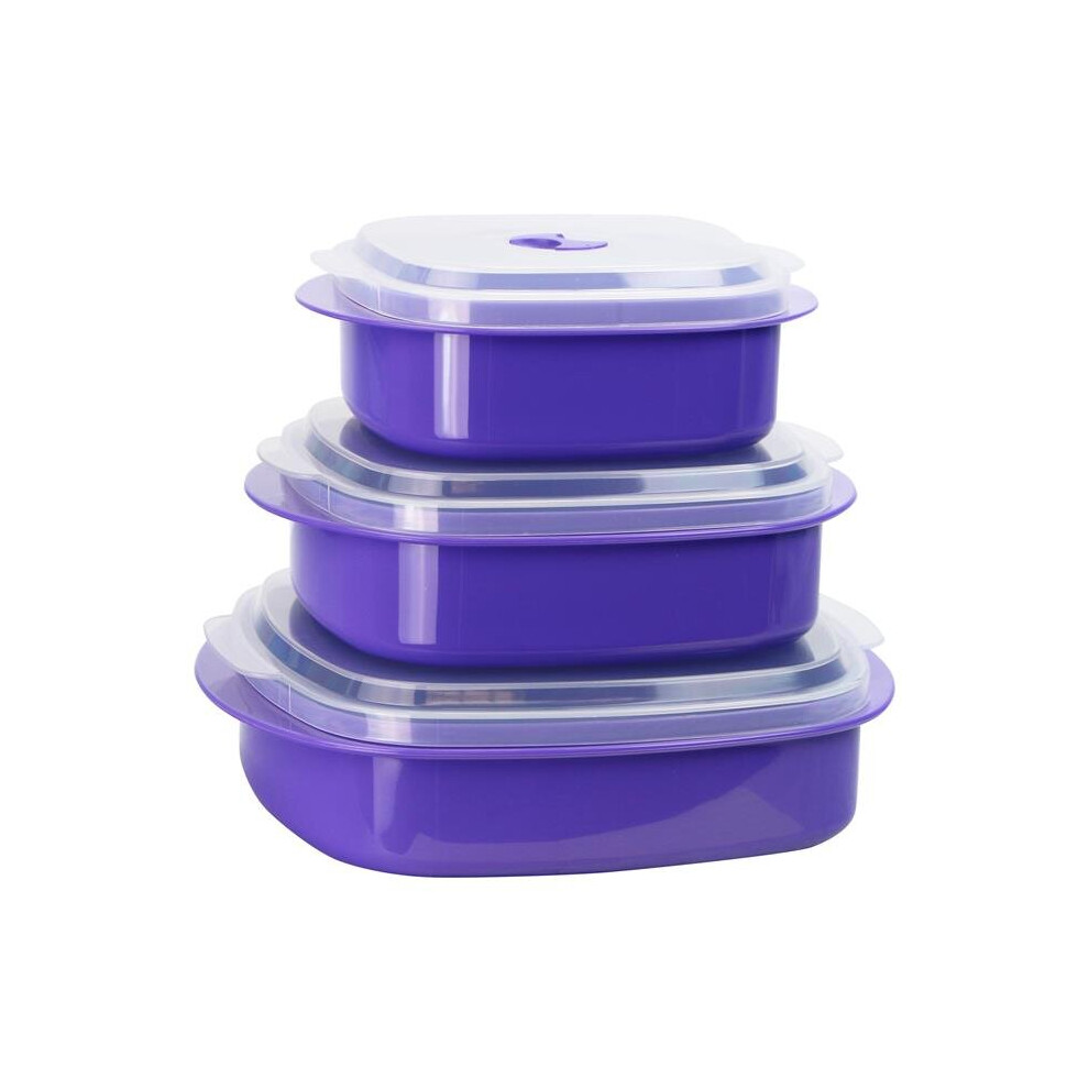 (Purple) Microwave Food Support Stacker 4 In 1 Plastic Food Plate Stand Tray With Handle