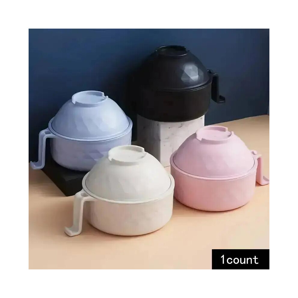 (Solid Color, Purple - 1 Count) Ramen Bowl Set, 1/2 Counts Microwave Safe Instant Noodle Bowl & Tableware Kit, Durable Matching Lunch Box For Student,