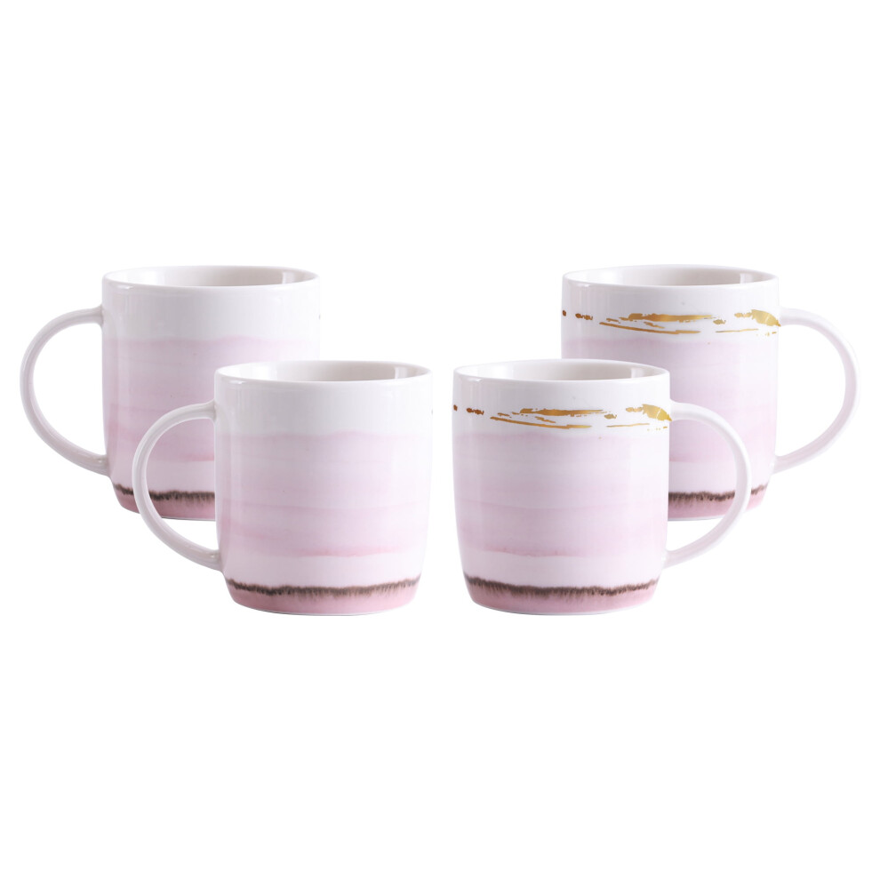 Bico Watercolor Marble Gold Lilac Purple Porcelain Mugs, Set of 4, for Coffee, Tea, Drinks, Microwave Safe & Handwash Suggested