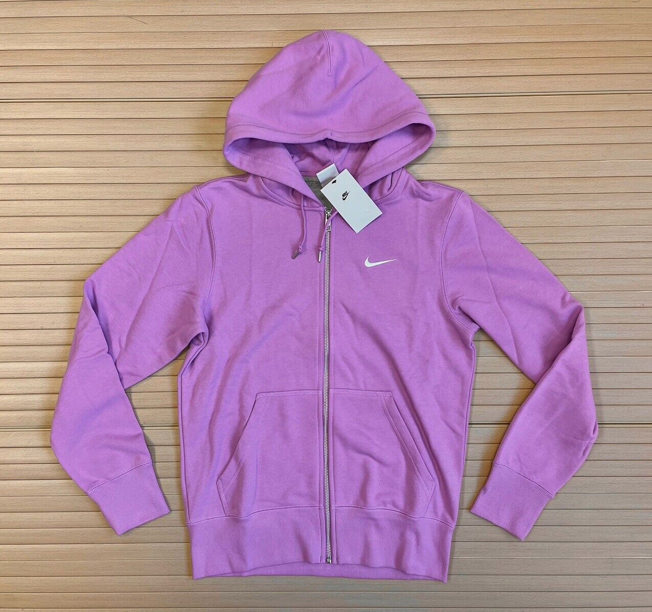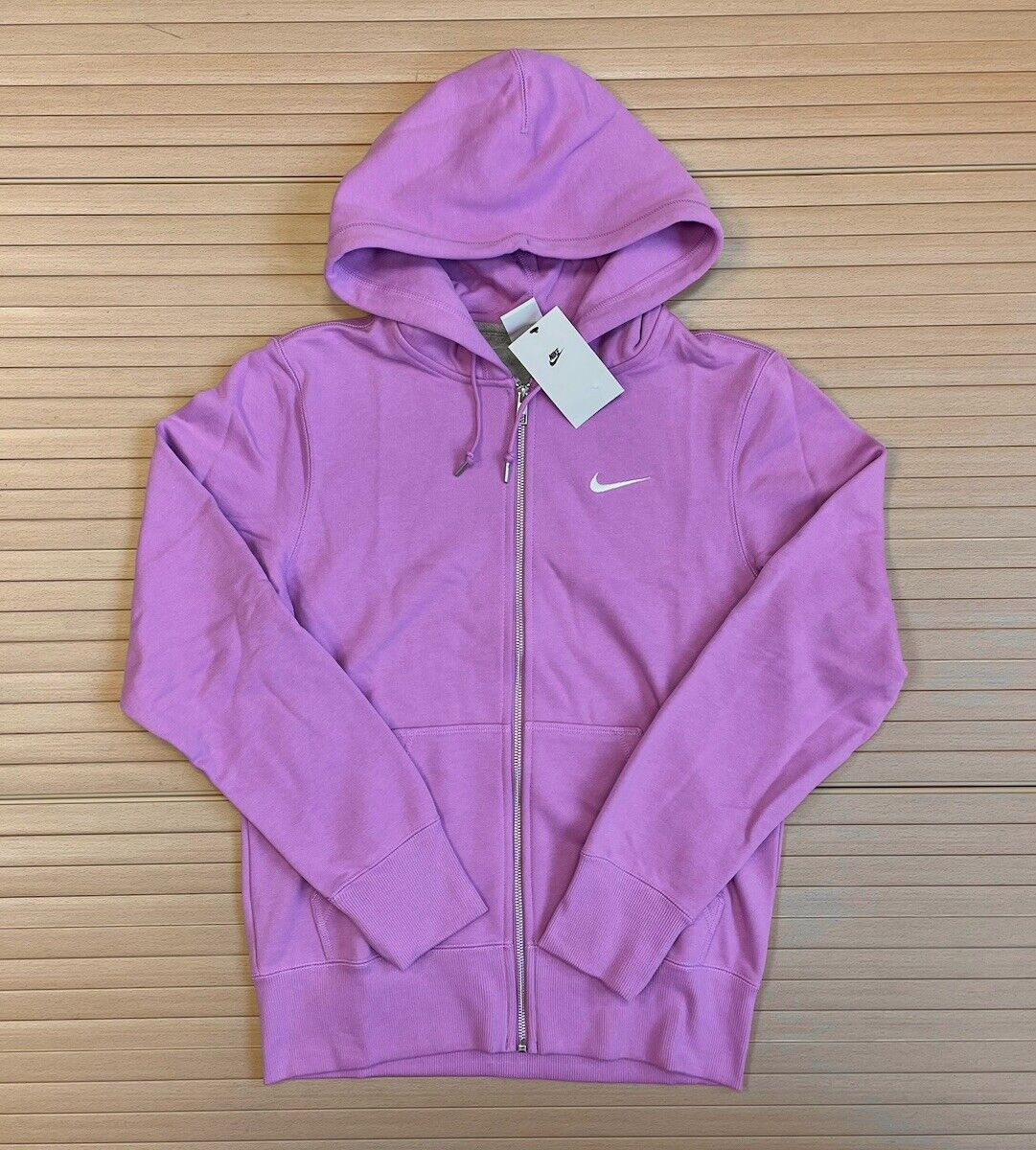 Nike Swoosh Full Zip Hoodie French Terry - Mens Size Small Violet Shock White