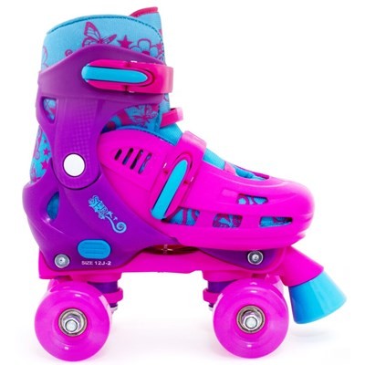 4 Wheel Adjustable Quad Roller Skates Kids Boots Childrens Rollerskates (Purple, Small/UK 11-1/)