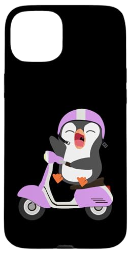 Penguin Riding Purple Scooter Case for iPhone 15 Plus
