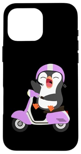 Penguin Riding Purple Scooter Case for iPhone 16 Pro Max