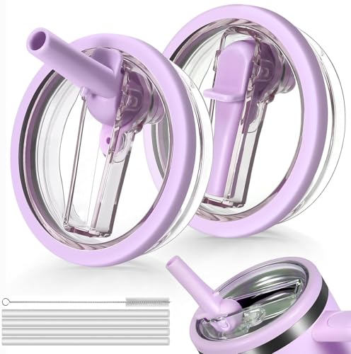 2 PCS 30oz Flip Straw Leak Proof Cup Lid forStanley H2.0 Quencher, Lid Replacement 30 oz for Stanley Cup ProTour, Spill Proof StrawCover for Travel, Gym, Daily Use (Purple)