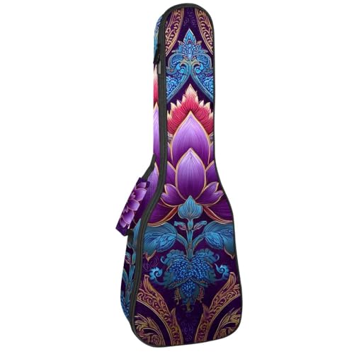 Aesthetic Purple Thai Pattern Ukulele Case, Padded Bag for 23 Inch Concert Ukulele, Waterproof & Durable