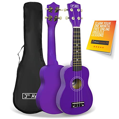 3rd Avenue Soprano Ukulele Beginner 21 Inch 4 Nylon Strings with Free Uke Bag – Purple – FREE 1 Month Online Lessons