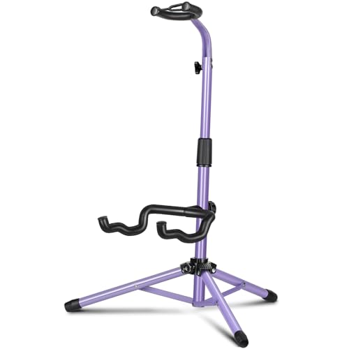 CAHAYA Guitar Stands Floor Metal with Neck Holder Folding Tripod Universal Holder, for Acoustic Electric Guitars Ukulele Violin Banjo Mandolin, Purple CY00253
