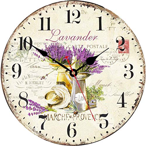 TAHEAT Romantic Lavander Wall Clock, French Purple Love Floral Clocks, Accurate Decorative Easy to Read Wall Clock for Living Room/Bedroom/Bathroom/Kitchen, 14 Inch